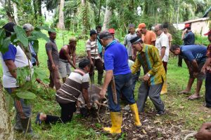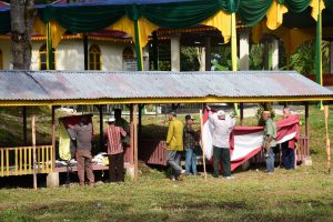 Tambang – Prosesi Pemotongan Kerbau dan Pendirian Bendera Suku menjelang pengukuhan Pucuk Adat dan Pucuk Suku Kenegerian Tambang – Terantang, Kecamatan Tambang – Kabupaten Kampar yang akan dilaksanakan pada hari Sabtu 25 Januari 2020 dilokasi acara Danau Bakuok Desa Aursati Kecamatan Tambang, Kabupaten Kampar, Jum’at.(24/2)