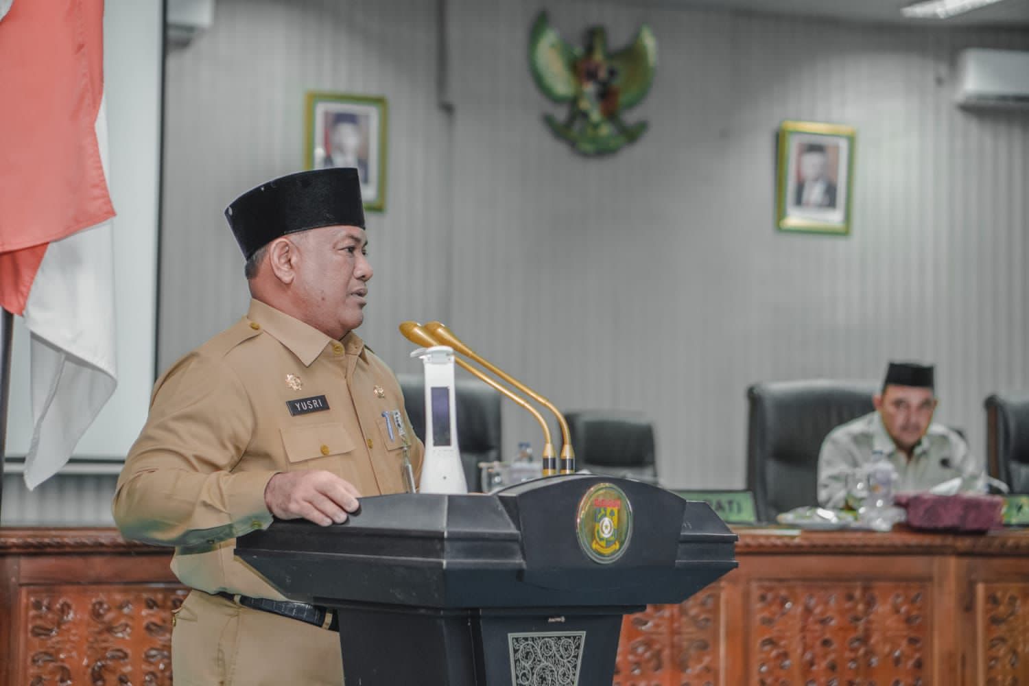 Hal tersebut disampaikan Pj Bupati Kampar Dr. H. Kamsol, MM yang diwakili oleh Sekretaris Daerah Drs. H. Yusri, M.Si dalam rapat paripurna yang dihadiri langsung oleh Ketua DPRD Kabupaten Kampar M.Faisal, Pimpinan DPRD Fahmil, dan Pimpinan DPRD Kampar Repol,S,Ag serta dihadiri seluruh anggota DPRD Kabupaten Kampar.